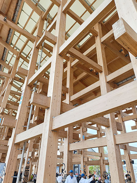 見所は沢山ありましたが、大屋根リングの梁柱高さには圧巻でした。