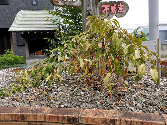 2019年2月に建築部内に植えた枝垂れ桜が元気ないです。。。