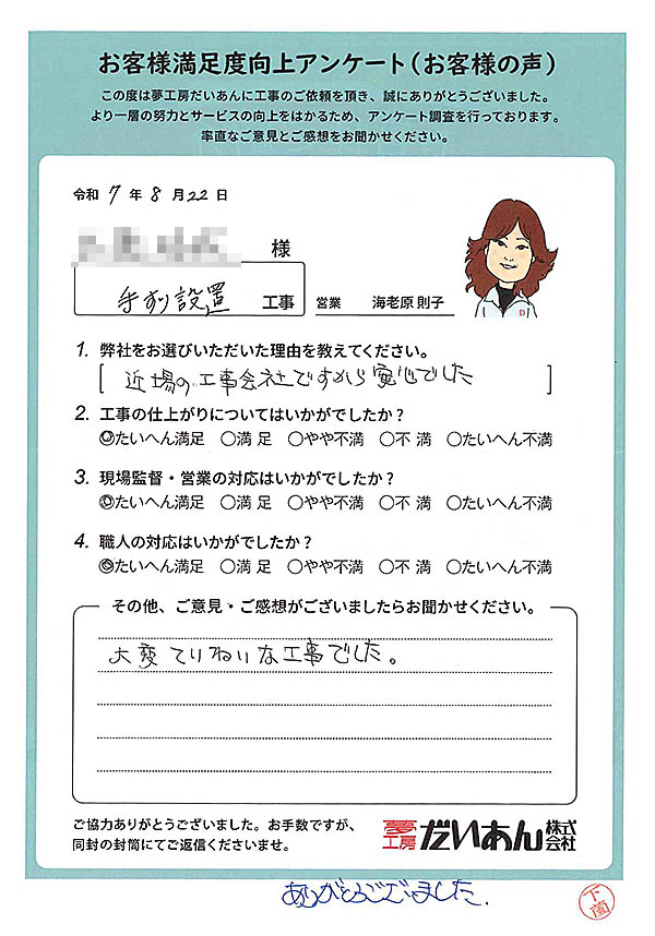 手すり設置 工事のお客様からのお声