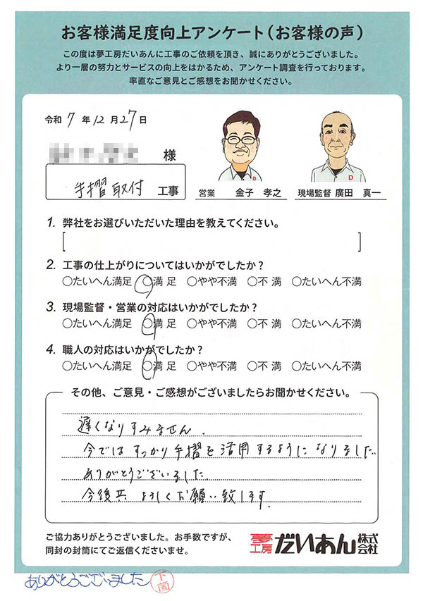 手摺取付 工事のお客様からのお声