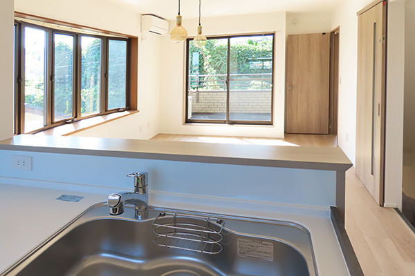 見晴らしのいい角地。もともとしっかりした邸宅をリフォーム。2世帯が1階と2階で快適に暮らせるよう両フロアとも、キッチン、水廻りを全面リフォーム。各部屋の断熱・気密性能、耐久性もアップして快適さと安心も兼ね備えました。